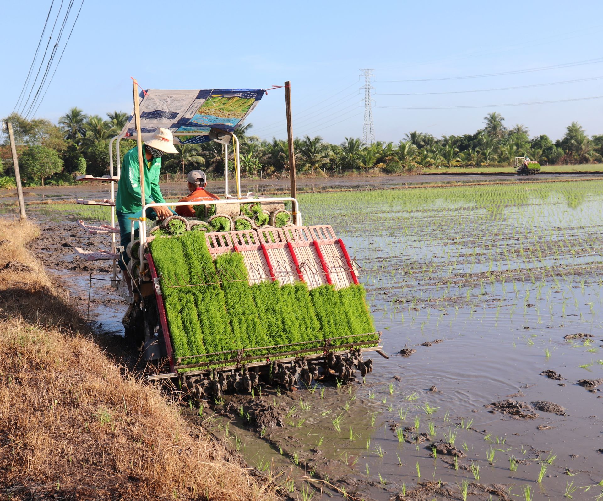 Cấy lúa bằng máy tại Hợp tác xã Giống cây trồng và dịch vụ nông nghiệp Bàu Đồn, Gò Dầu.