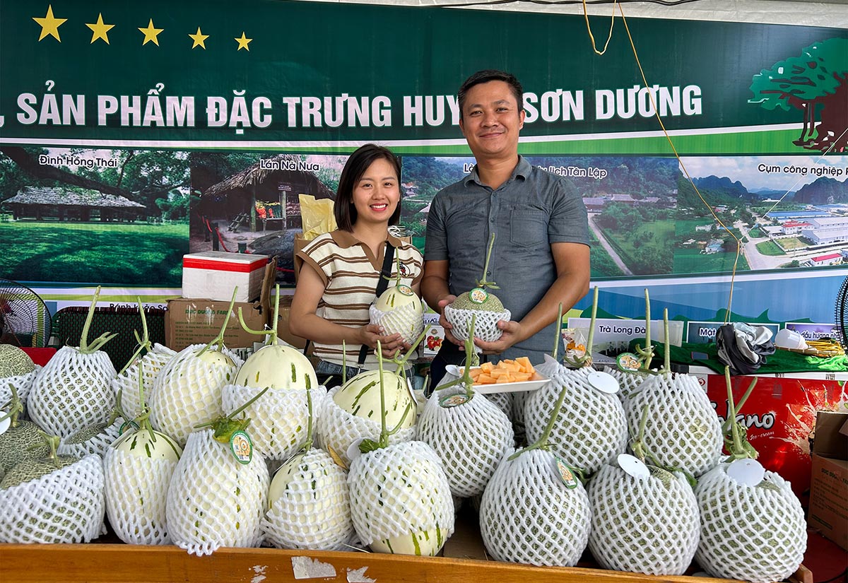 Sản phẩm dưa lưới Đức Dương Farm tham gia quảng bá, bày bán tại các hội chợ thương mại trong và ngoài tỉnh.